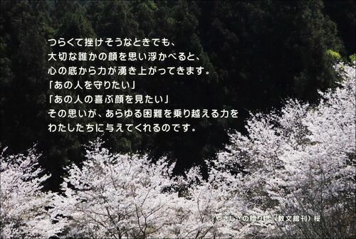 大切な人のために つらくて挫けそうなときでも、大切な誰かの顔を思い浮かべると、心の底から力が湧き上がってきます。「あの人を守りたい」「あの人の喜ぶ顔を見たい」その思いが、あらゆる困難を乗り越える力をわたしたちに与えてくれるのです。 『やさし…