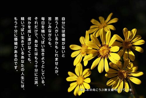十分に立派 自分には価値がないと思う人がいるかもしれませんが、苦しみながらも、毎日を精いっぱい生きようとしている。それだけで、あなたはもう十分に立派。何かを成し遂げなくても、精いっぱい生きているあなたの人生には、もう十分に価値があるのです。…
